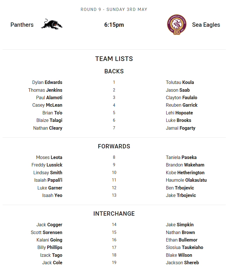 Panthers vs Sea Eagles – Sunday 6:15PM at CommBank Stadium